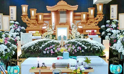 やすらぎ50プランは、祭壇が特別花祭壇となっており、こころ40プランより一段とグレードアップしております。